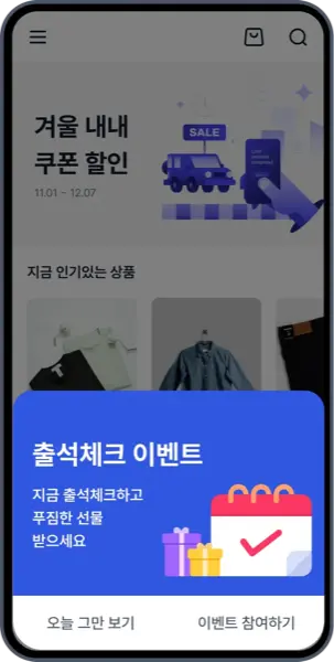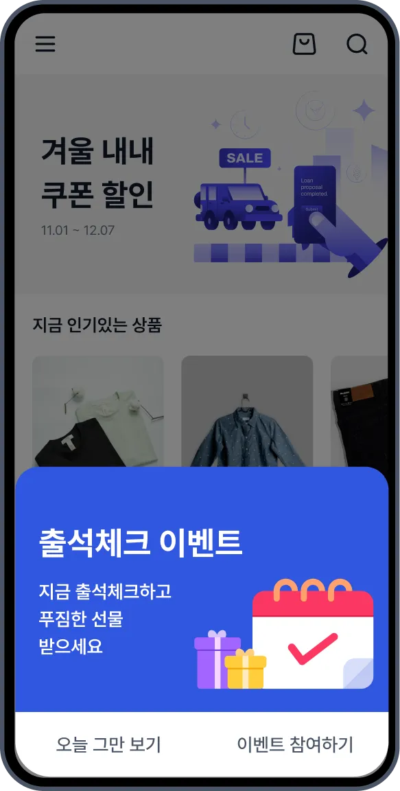 사용자의 행동·페이지·기간 등 다양한 조건을 지정해 메시지를 가장 효과적인 타이밍에 노출할 수 있습니다.
